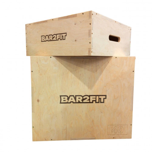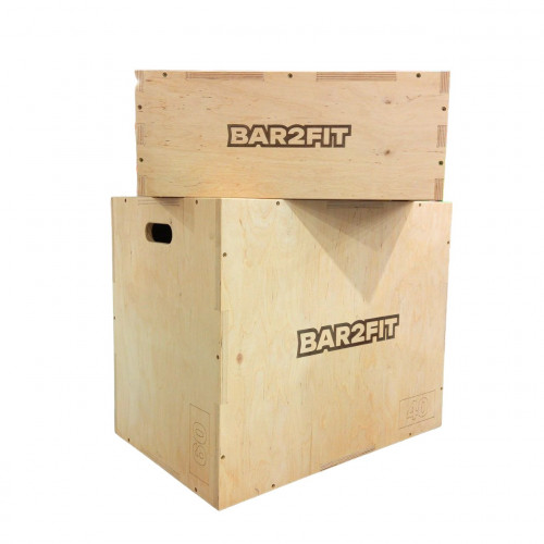 Набор плиометрических боксов BAR2FIT состоит из двух тренажеров размерами 60 х 50 х 40 см и 50 х 50 х 20 см, который еще называется тумба для запрыгивания или бокс для кроссфита - это профессиональный и практичный инструмент, который используется в широком спектре упражнений и особо ценится любителями фитнеса и кроссфита. Принцип тренировок заключается в выполнении быстрых, взрывных движений позволяющих увеличить мышечную силу нижней части тела, а также улучшить технику выполнения определенных элементов направленных на развитие устойчивости и силы.