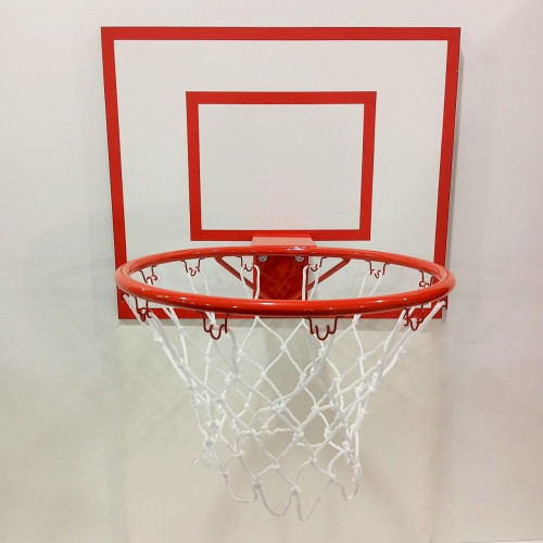 Баскетбольный щит с кольцом №7 и новой крепкой нейлоновой белой сеткой, которая идет в комплекте предназначенный для помещений и улицы. Это отличный снаряд для проведения тренировок по баскетболу в домашних условиях. Материал основания баскетбольного щита ЛДСП размером 60 см*50 см.