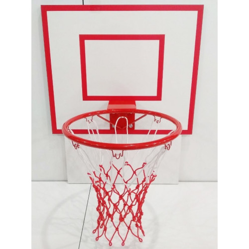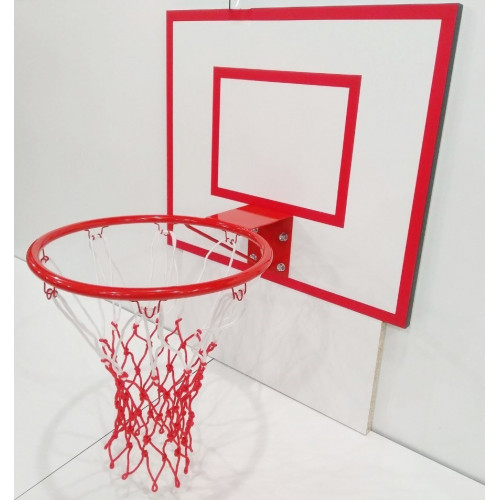 Баскетбольный щит с кольцом №5 и новой крепкой нейлоновой бело-красной сеткой, которая идет в комплекте предназначенный для помещений и улицы. Это отличный снаряд для проведения тренировок по баскетболу в домашних условиях. Материал основания баскетбольного щита ЛДСП размером 60 см*50 см.