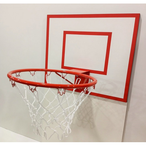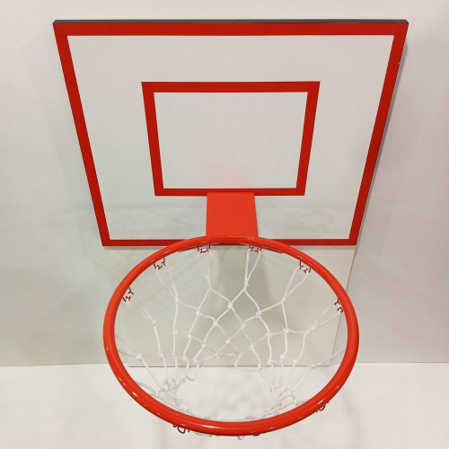 Баскетбольный щит с кольцом №5 и новой крепкой нейлоновой белой сеткой, которая идет в комплекте предназначенный для помещений и улицы. Это отличный снаряд для проведения тренировок по баскетболу в домашних условиях. Материал основания баскетбольного щита ЛДСП размером 60 см*50 см.