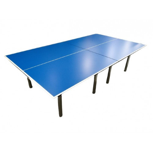 Теннисный стол для закрытых помещений любительского уровня, отлично подойдет для дачи, частного дома, для двора, для детского лагеря или базы отдыха а также как тренировочный стол для школ. В качестве материала для игровой поверхности используется специально обработанная древесностружечная плита (ДСП). На ДСП нанесено специальное антибликовое пластиковое покрытие синего цвета, также имеется стандартная разметка игрового поля. Стол состоит из двух половин. Каждая половина столешницы имеет независимую разборную конструкцию и базируется на четырех резьбовых ножках, которые жестко фиксируются в игровом положении. Ножки имеют регулировку по высоте, общая высота стола регулируется от 72 см до стандартных 76 см. Сетка с креплениями входит в комплект.