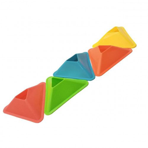 Комплект треугольных разноцветных фишек для тренировки от бренда BAX (5 шт.) легко переносится, имеет небольшой вес и компактно складывается. Яркая раскраска позволяет видеть объект даже на больших дистанциях на фоне различных поверхностей.