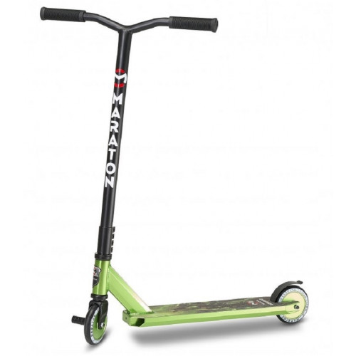 Трюковый самокат Maraton Blazer HIC – это самокат для экстремального катания который подойдет для детей и подростков. Он станет практичным и универсальным вариантом для повседневной езды по улицам города так и надежным вариантом для екстремальной езды в специальных трюковых парках. Предназначен для детей от 6 лет. Рама самоката выполнена из алюминия, этот материал не ржавеет, что увеличивает срок использования самоката на долгие годы. Руль надежно крепится к раме самоката, сделан из хроммолибденового стального сплава. Ручки выполнены из качественной резины с рельефным узором, что предотвращает скольжение рук. Самокат оснащен двумя колесами, диаметром - 110 мм, это делает самокат сверх маневренным и в то же время обладающим хорошим накатом. Самокат имеет классический ножной тормоз Flex, что позволит быстро среагировать в любой ситуации.